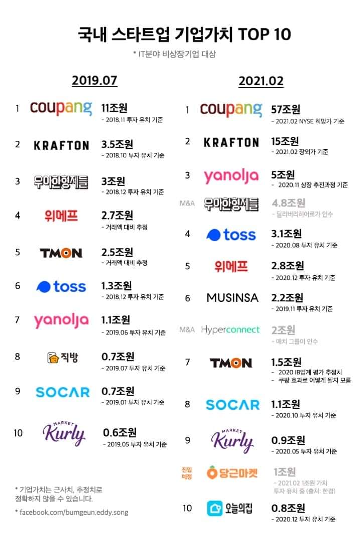 ๊ตญ๋ด ์คํํธ์ ๊ธฐ์ ๊ฐ์น TOP 10