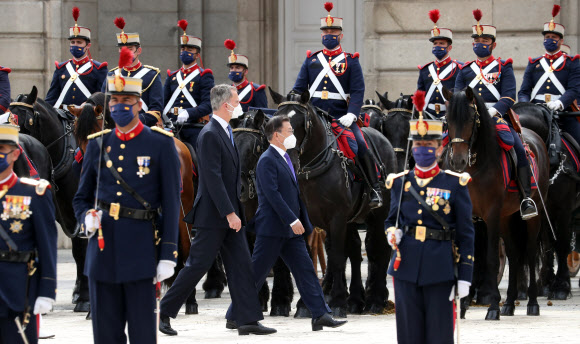 ๋ฌธ์ฌ์ธ ๋ํต๋ น์ด 15์ผ ์คํ (ํ์ง์๊ฐ) ์คํ์ธ ์๋ ๋ง๋๋ฆฌ๋์ ๋์ฐฉํด 2๋ฐ 3์ผ๊ฐ์ ๊ตญ๋น๋ฐฉ๋ฌธ ์ผ์ ์ ์์ํ๋ค. ์คํ์ธ์ ์ ์ข ์ฝ๋ก๋๋ฐ์ด๋ฌ์ค ๊ฐ์ผ์ฆ(์ฝ๋ก๋19) ์ดํ ์ฒ์ ๋ง๋ ๊ตญ๋น์ธ ๋ฌธ ๋ํต๋ น์ ์ ์ฅํ๊ณ ํ๋ คํ๊ฒ ํ๋ํ๋ค.