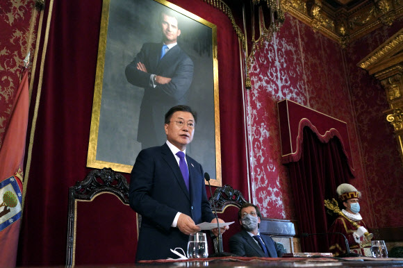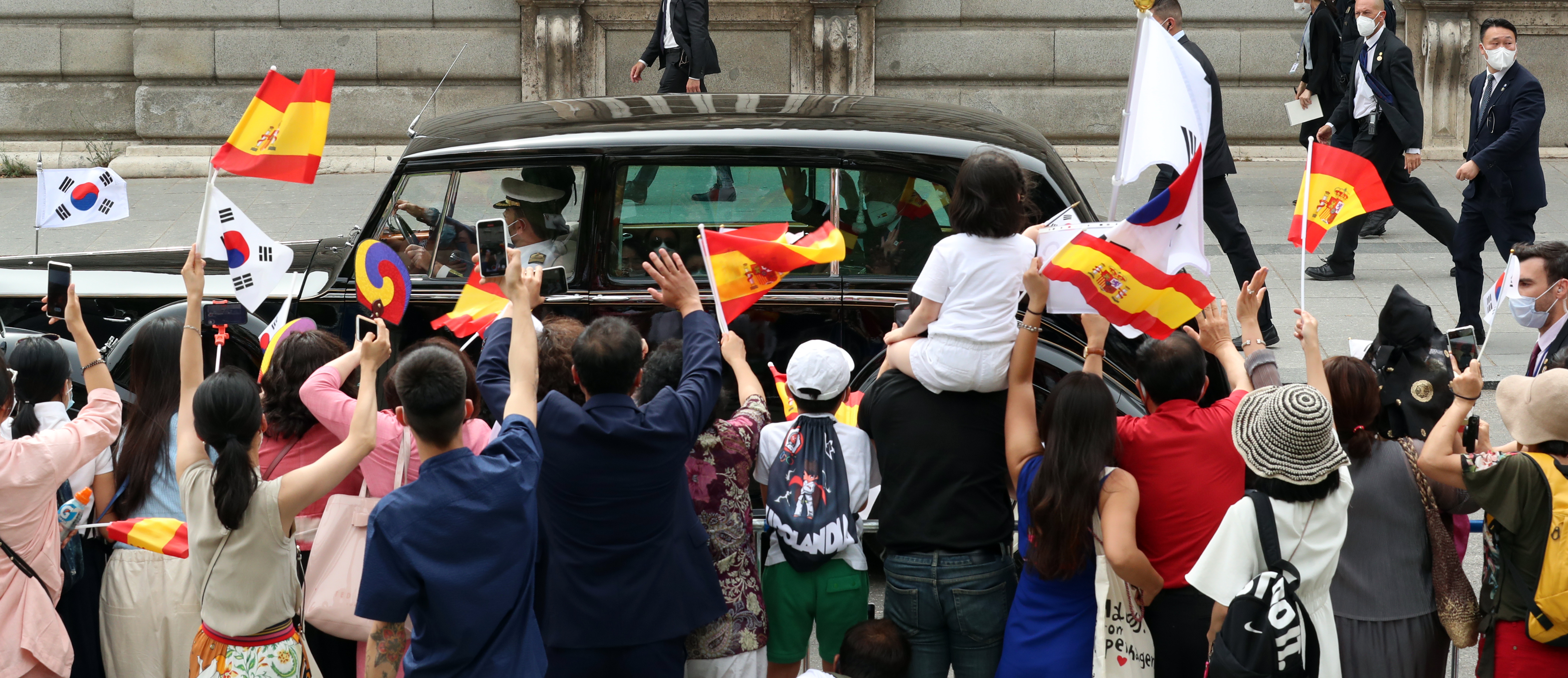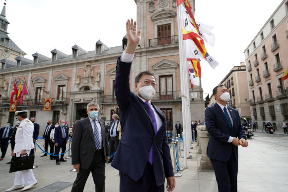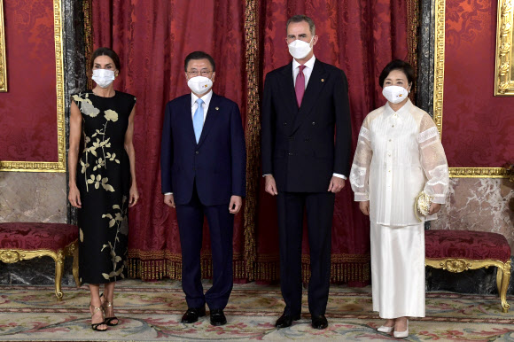 ๋ฌธ์ฌ์ธ ๋ํต๋ น์ด 15์ผ ์คํ (ํ์ง์๊ฐ) ์คํ์ธ ์๋ ๋ง๋๋ฆฌ๋์ ๋์ฐฉํด 2๋ฐ 3์ผ๊ฐ์ ๊ตญ๋น๋ฐฉ๋ฌธ ์ผ์ ์ ์์ํ๋ค. ์คํ์ธ์ ์ ์ข ์ฝ๋ก๋๋ฐ์ด๋ฌ์ค ๊ฐ์ผ์ฆ(์ฝ๋ก๋19) ์ดํ ์ฒ์ ๋ง๋ ๊ตญ๋น์ธ ๋ฌธ ๋ํต๋ น์ ์ ์ฅํ๊ณ ํ๋ คํ๊ฒ ํ๋ํ๋ค.