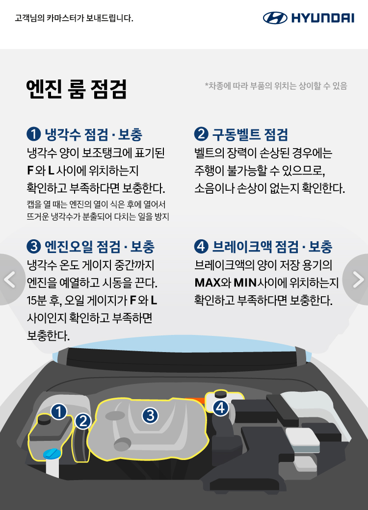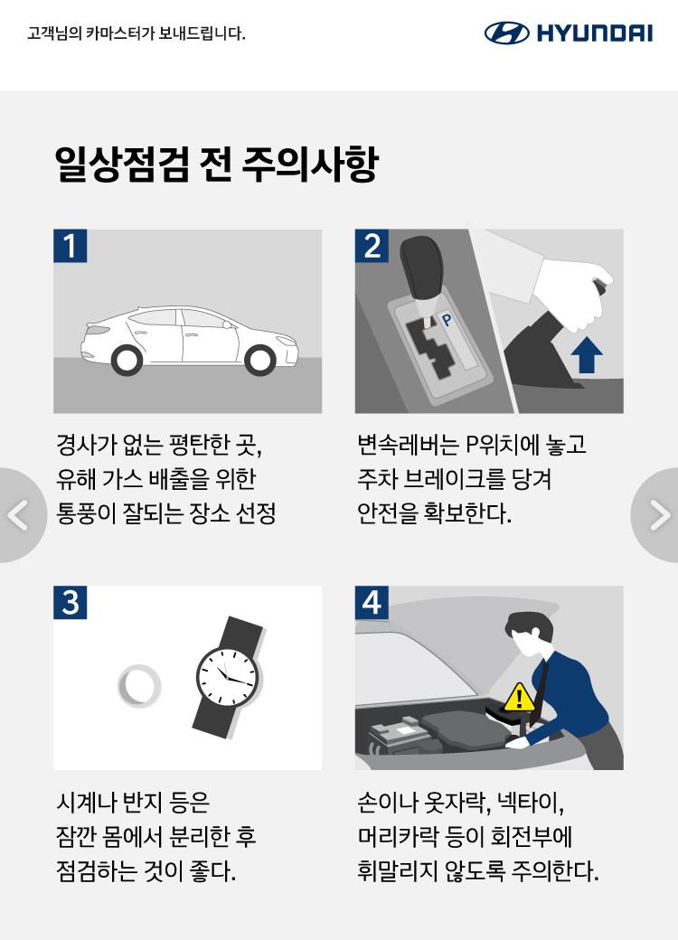 μλμ°¨ μΌμμ κ²μ΄λ μ΄ν μ μ΄μ μκ° μ§μ κ°μ’ μ₯μΉμ μνλ₯Ό μ κ²νλ κ²μΈλ°μ. μ΄λ₯Ό μ΅κ΄ννλ©΄ μλμ°¨ κ³ μ₯μΌλ‘ μΈν μ¬κ³ λ₯Ό λ°©μ§ν μ μμ΅λλ€.