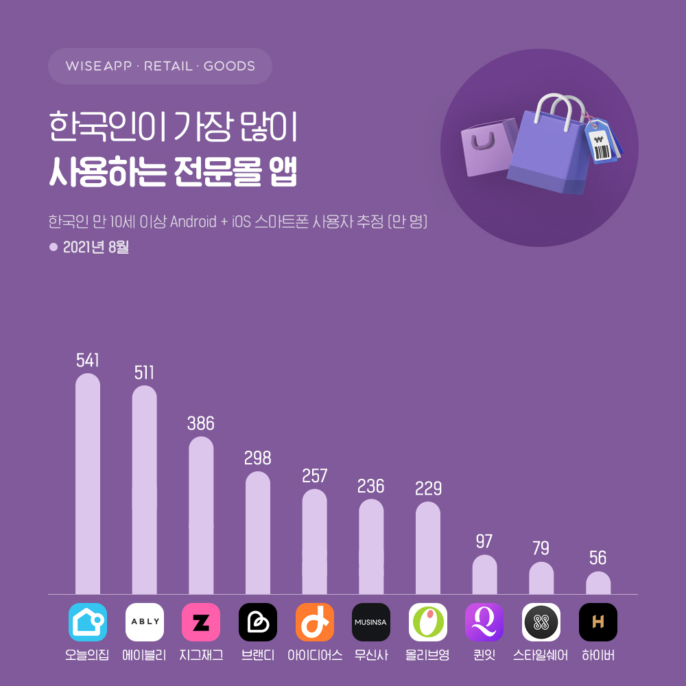 ๋ชจ๋ ์ธ๋๋ฅผ ํฉ์ณ ๊ฐ์ฅ ๋ง์ด ์ฌ๋์ด ์ฌ์ฉํ ์ผํ ์ฑ์ ‘์ฟ ํก’์ผ๋ก ์ง๋ 8์ ํ ๋ฌ๊ฐ 2,359๋ง ๋ช ์ด ์ฌ์ฉํ ๊ฒ์ผ๋ก ์กฐ์ฌ๋๋ค. ๊ทธ ๋ค๋ 11๋ฒ๊ฐ 788๋ง ๋ช , G๋ง์ผ 655๋ง ๋ช , ์ค๋์์ง 541๋ง ๋ช , ์์ด๋ธ๋ฆฌ 511๋ง ๋ช , ํฐ๋ชฌ 427๋ง ๋ช , ์๋ฉํ 395๋ง ๋ช , ์ง๊ทธ์ฌ๊ทธ 386๋ง ๋ช , GS SHOP 365๋ง ๋ช , ์ฅ์ 349๋ง ๋ช ์์ด์๋ค.