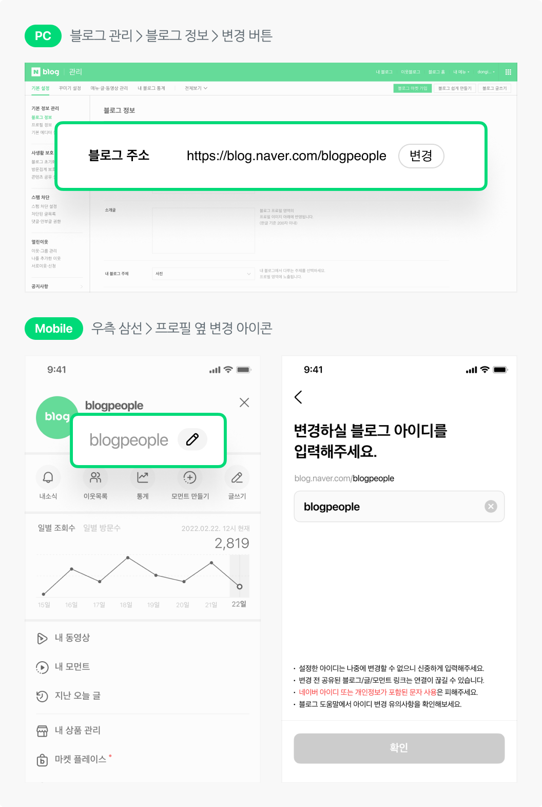๊ธฐ์กด ๋ธ๋ก๊ทธ ์ฌ์ฉ์๋ผ๋ฉด ๋ธ๋ก๊ทธID๋ฅผ 1ํ ๋ณ๊ฒฝํ ์ ์์ต๋๋ค. ์ ํ์ฌํญ