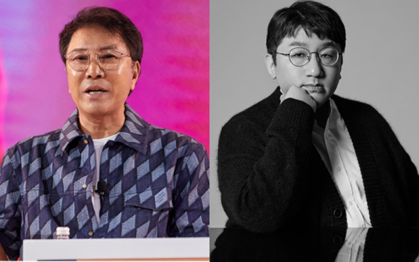 ์ด์ˆ˜๋งŒ SM ์ฐฝ์—…์ž(์™ผ์ชฝ)๊ฐ€ ๋ฐฉ์‹œํ˜ ํ•˜์ด๋ธŒ ์˜์žฅ๊ณผ ์†์„ ์žก์•˜๋‹ค. ํ•˜์ด๋ธŒ๊ฐ€ ์ด์ˆ˜๋งŒ SM ์ง€๋ถ„์„ ์ธ์ˆ˜ํ•ด ๋‹จ์ˆจ์— SM ์ตœ๋Œ€ ์ฃผ์ฃผ๋กœ ๋– ์˜ฌ๋ž๋‹ค. ์‚ฌ์ง„=SM์—”ํ„ฐํ…Œ์ธ๋จผํŠธ, ๋น…ํžˆํŠธ์—”ํ„ฐํ…Œ์ธ๋จผํŠธ ์ œ๊ณต