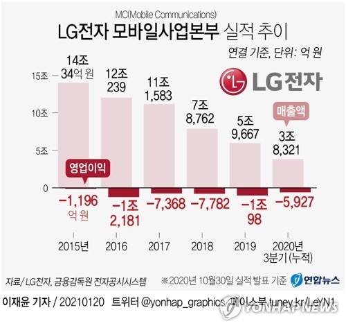 LG์ ์์ ๋ชจ๋ฐ์ผ ์ฌ์ ์ ๋งก์ MC์ฌ์ ๋ณธ๋ถ๋ 2015๋ 2๋ถ๊ธฐ ์ด๋ ์ง๋ํด 4๋ถ๊ธฐ๊น์ง 23๋ถ๊ธฐ ์ฐ์ ์์ ์ ์๋ฅผ ์ด์ด์ค๊ณ ์๋ค. ์ง๋ํด๋ง๊น์ง ๋์ ์์ ์ ์๋ 5์กฐ์์ ๋ฌํ๋ค.